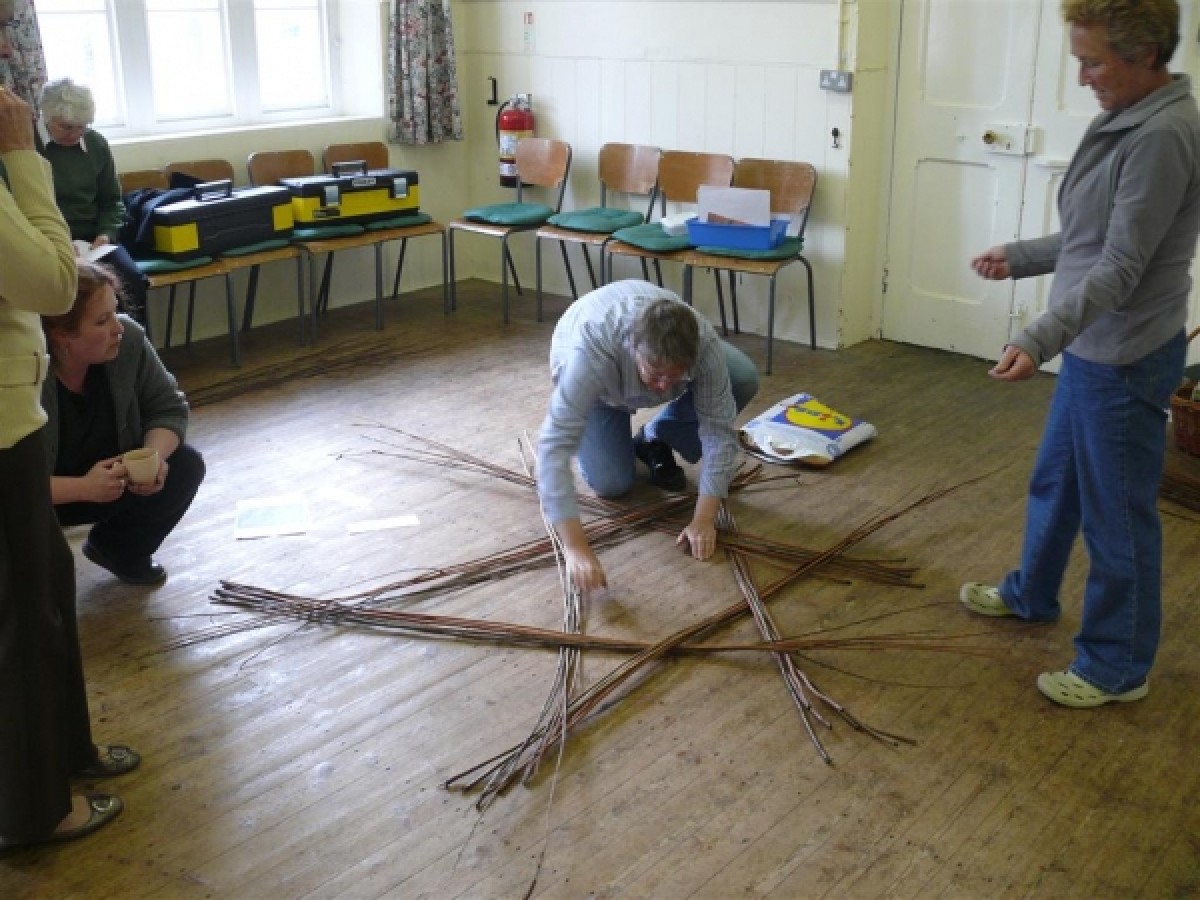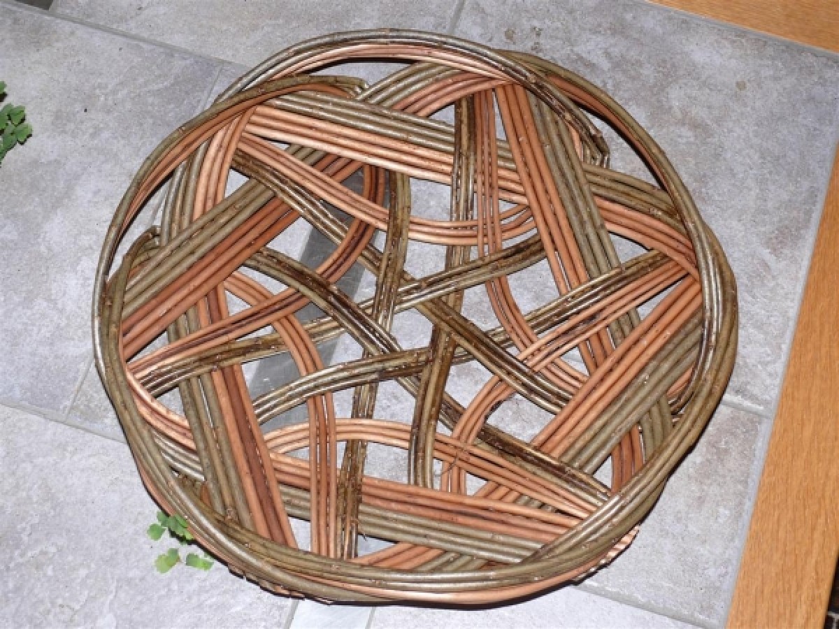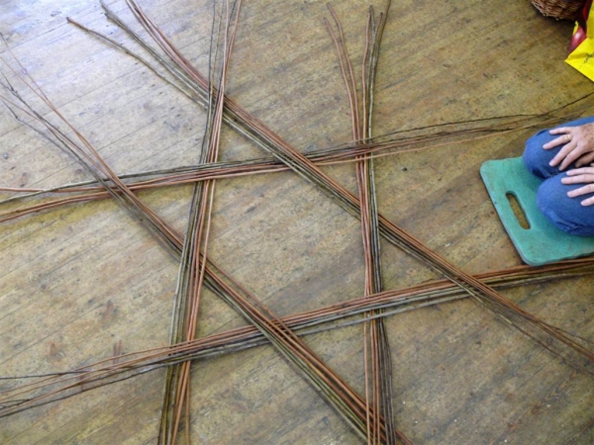 The focus of the September 2010 self help group meeting at Hepple was on making Celtic Knot baskets. Starting with laying out six sets of six 7 foot long rods the sequence of weaving the basket is shown in the attached images. To make the weaving easier two types of rods were used, brown and buff. At first the tips are pulled through the weaving and butts are pulled through at the end. The sequence for weaving the second round of weaving is as follows:
