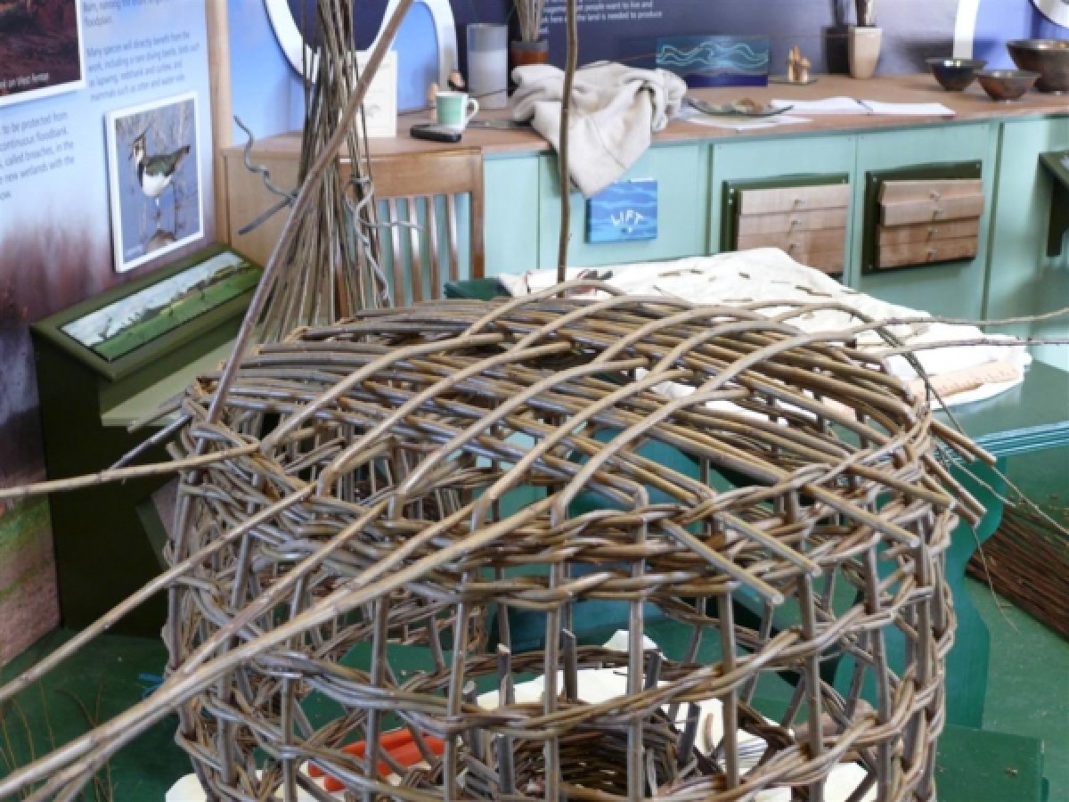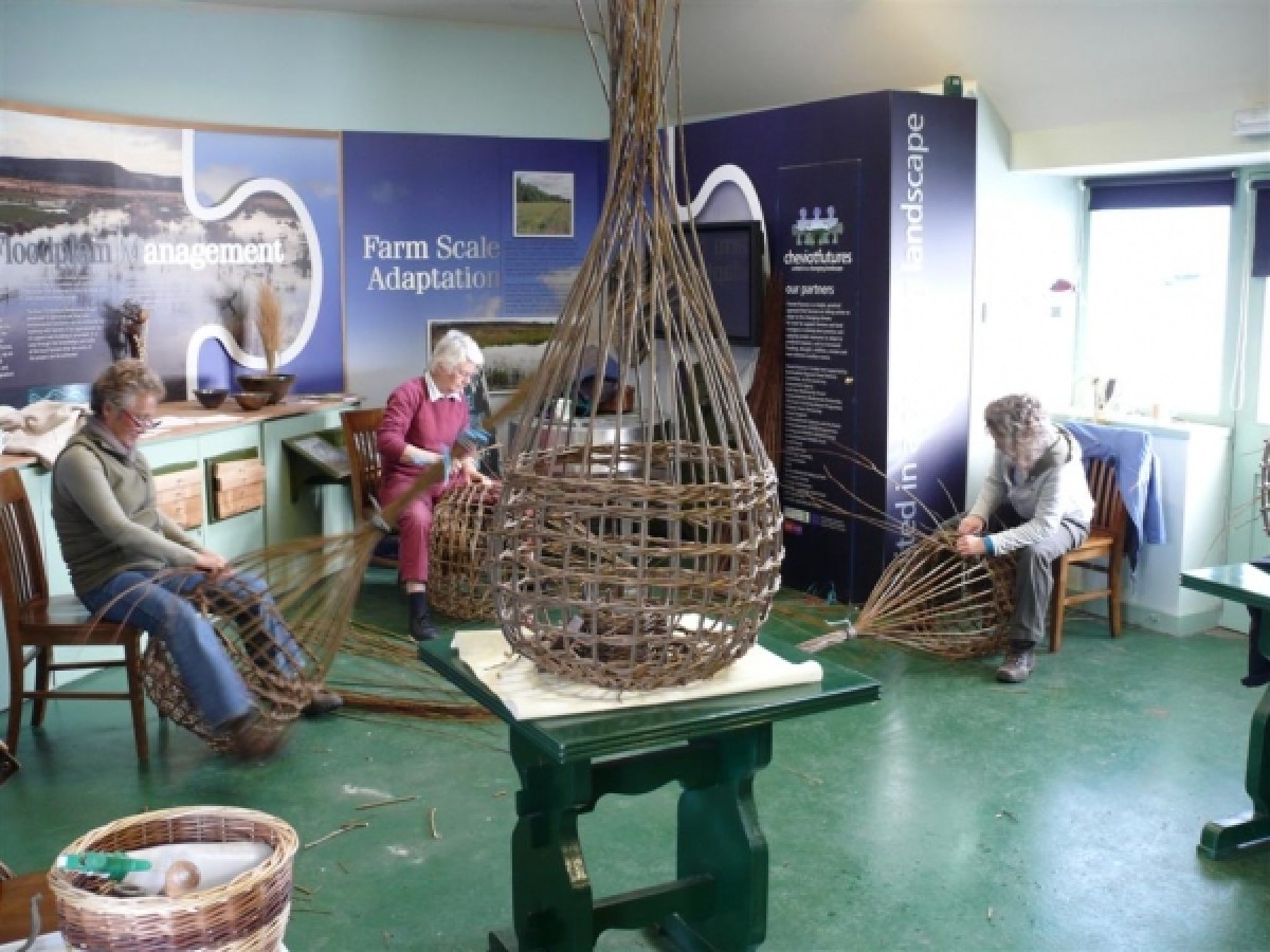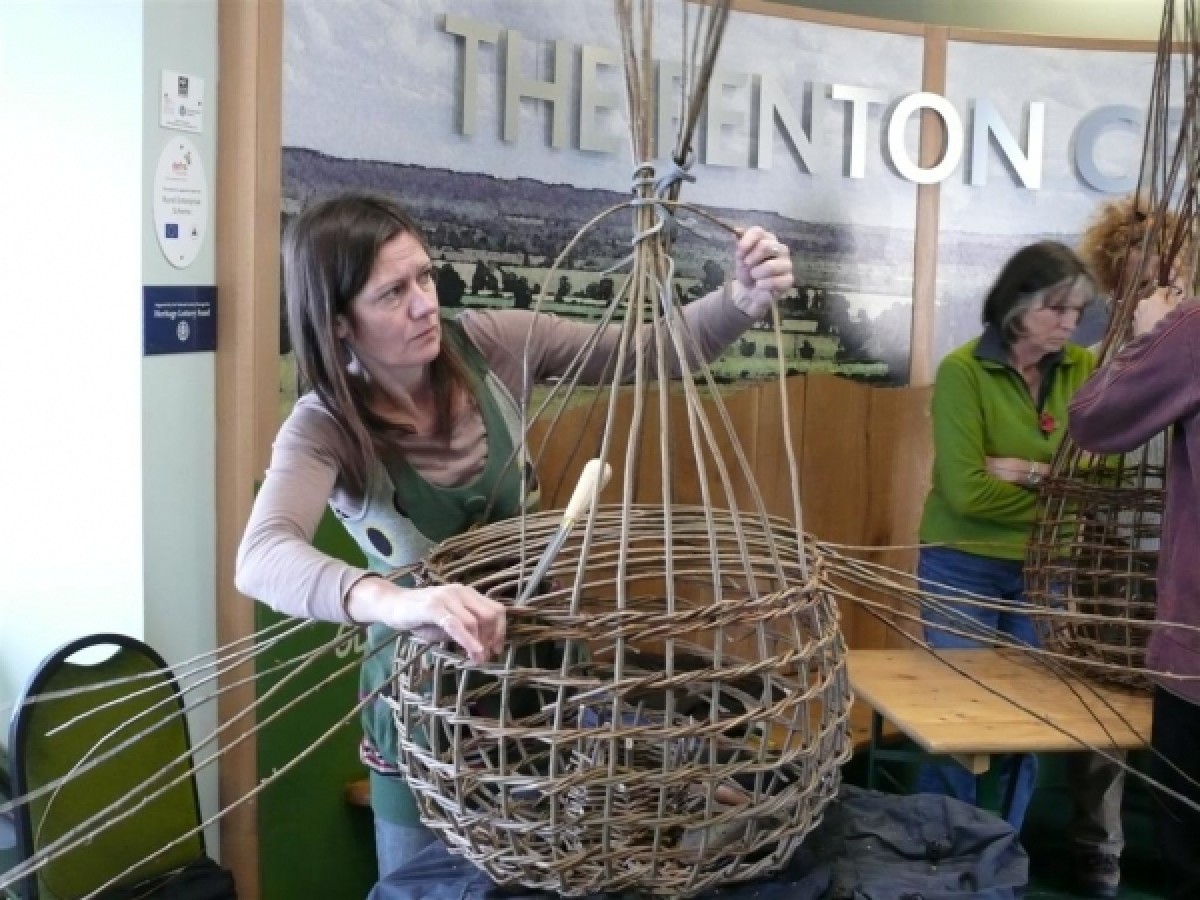 Untie the two lots of 6 stakes and prick down, weave over 2 lots of 4 under 2 lots of 4 and thread under edge of weaving continue.