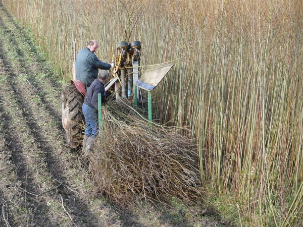 Harvesting begins in mid-November using a very sharp hook. Bundles are tied with a rod of willow and secured with the traditional rose knot. In former times the willow fields were often flooded and the transporting of the cut willow away from the willow beds to the farm or the basketmakers had to be carried out by boat using a flat bottomed rowing boat called a withy boat.