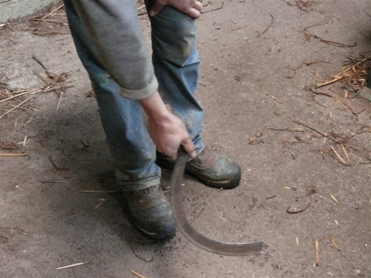 A sharp billhook (Jonathan Coates name for it but we would call it a sickle) is the best tool for cutting willow by hand. It should have the end of the curve cut off as that part is not used.
