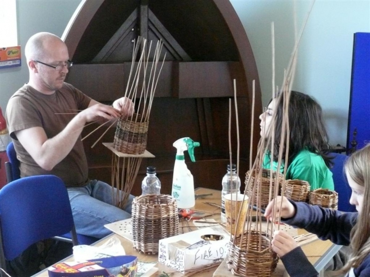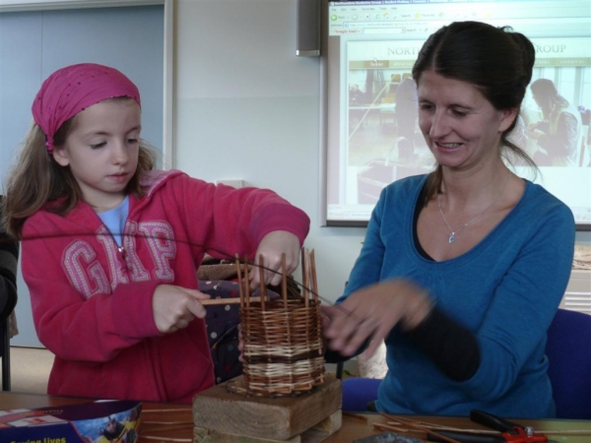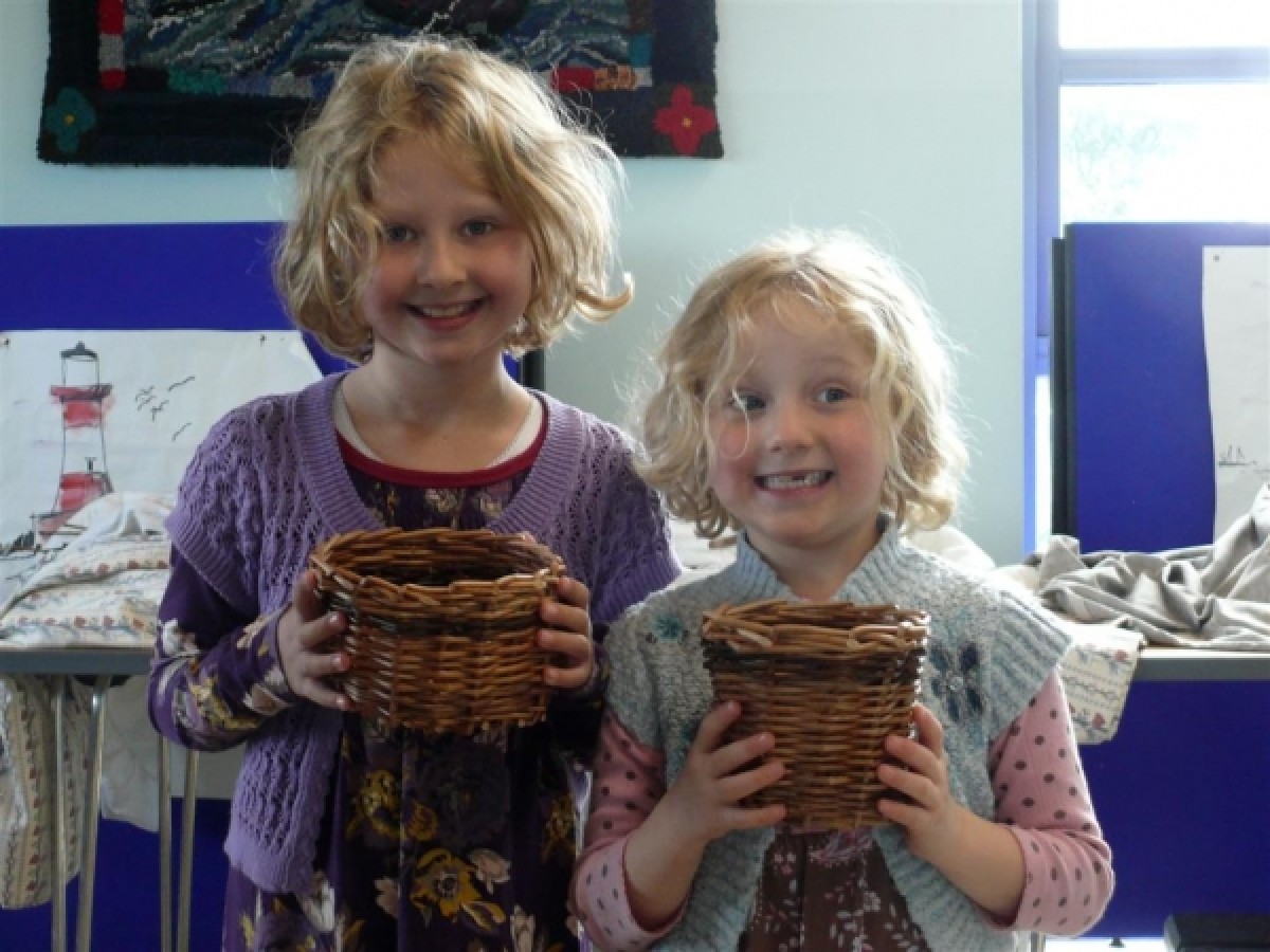 At the Northumbria Basketry Group Open Day held at the RNLI Grace Darling Museum in the half term holiday members of the public visiting the site made two types of simple basket. This was an activity where members of a family could work together to make something useful and discover the joy of creating a basket.