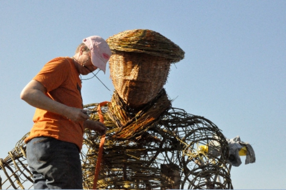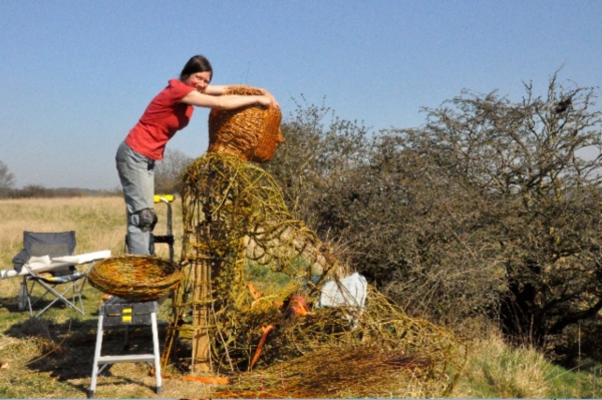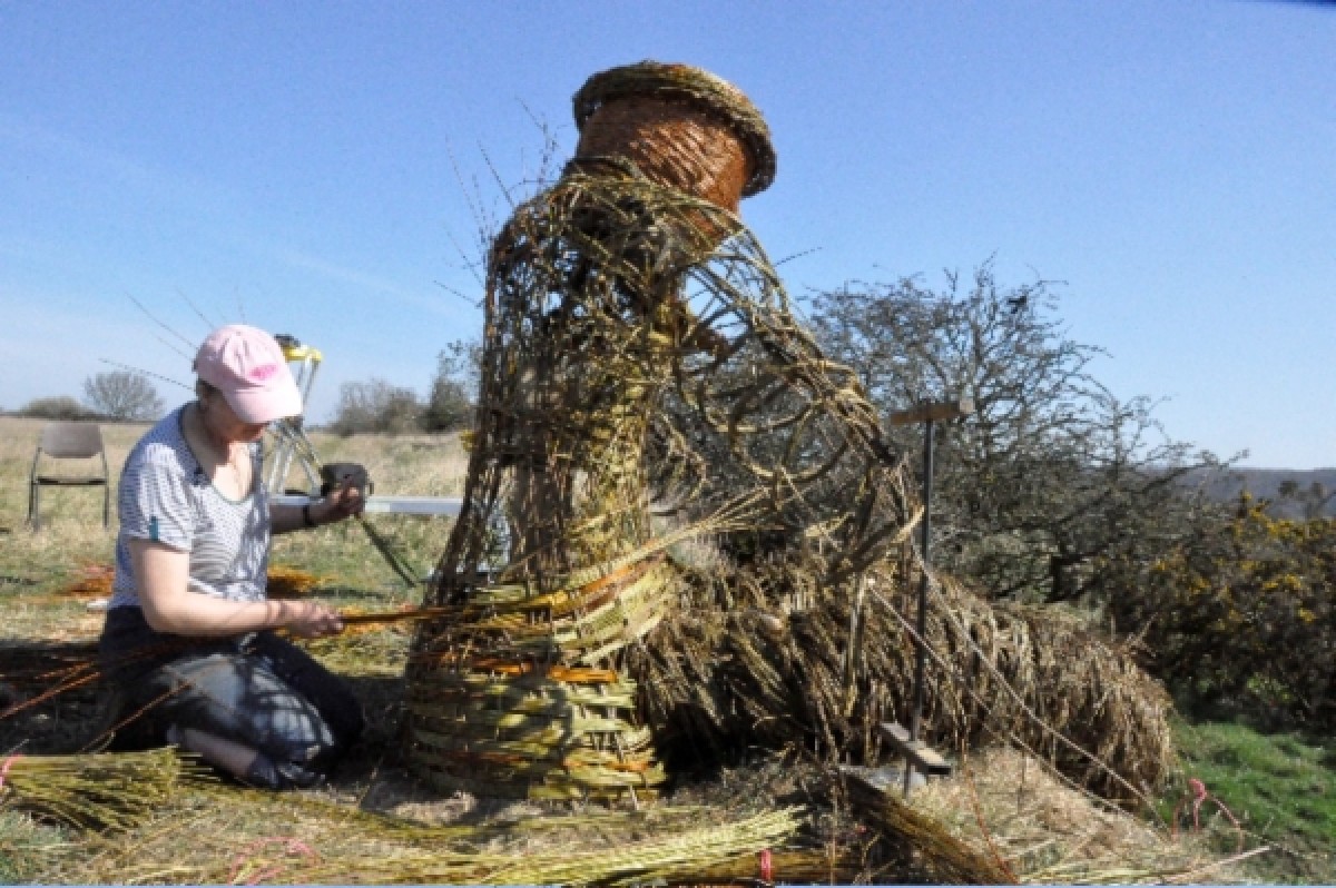 Making a willow coal miner sculpture at Burnhall Wood, Durham.