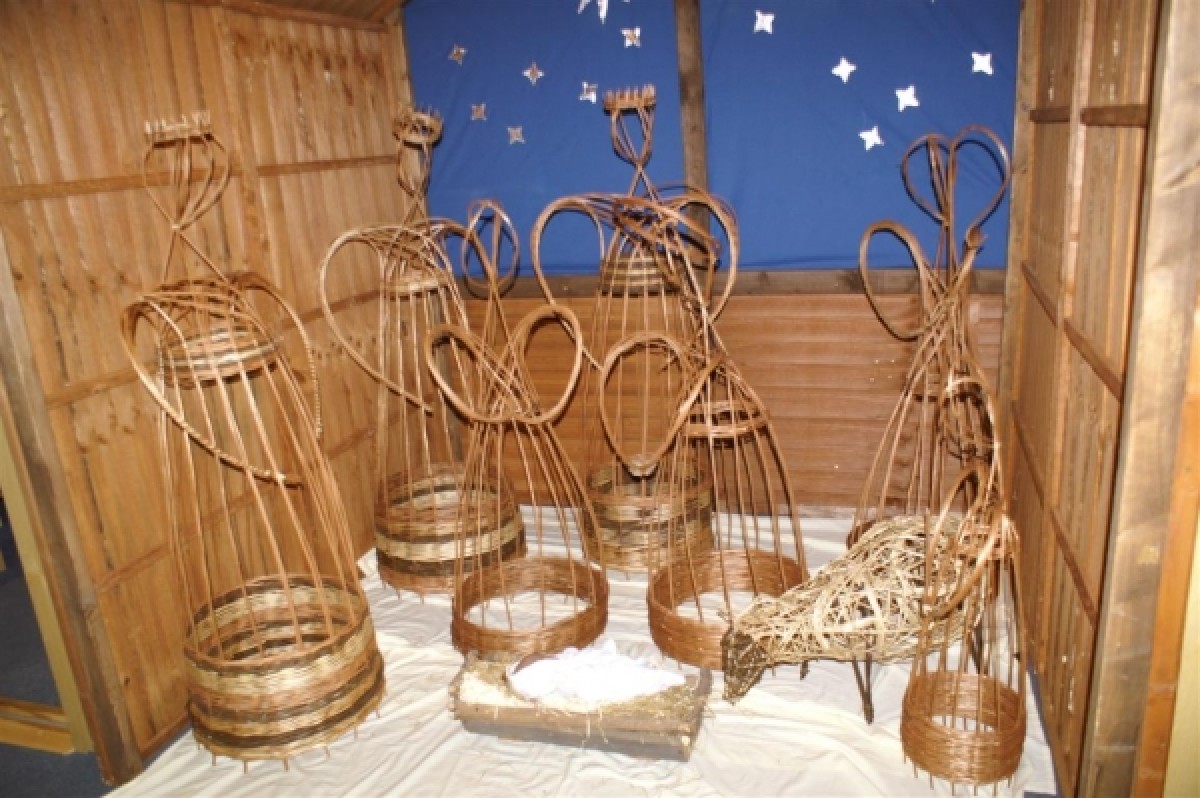 The churchwardens were captivated by the decorative potential of willow in a church setting and decided that they would like a complete willow nativity scene to accompany the angel as their previous hand-made nativity was several years old and ready for replacement. They contacted Ruth who passed on the request to the Northumbria Basketry Group.