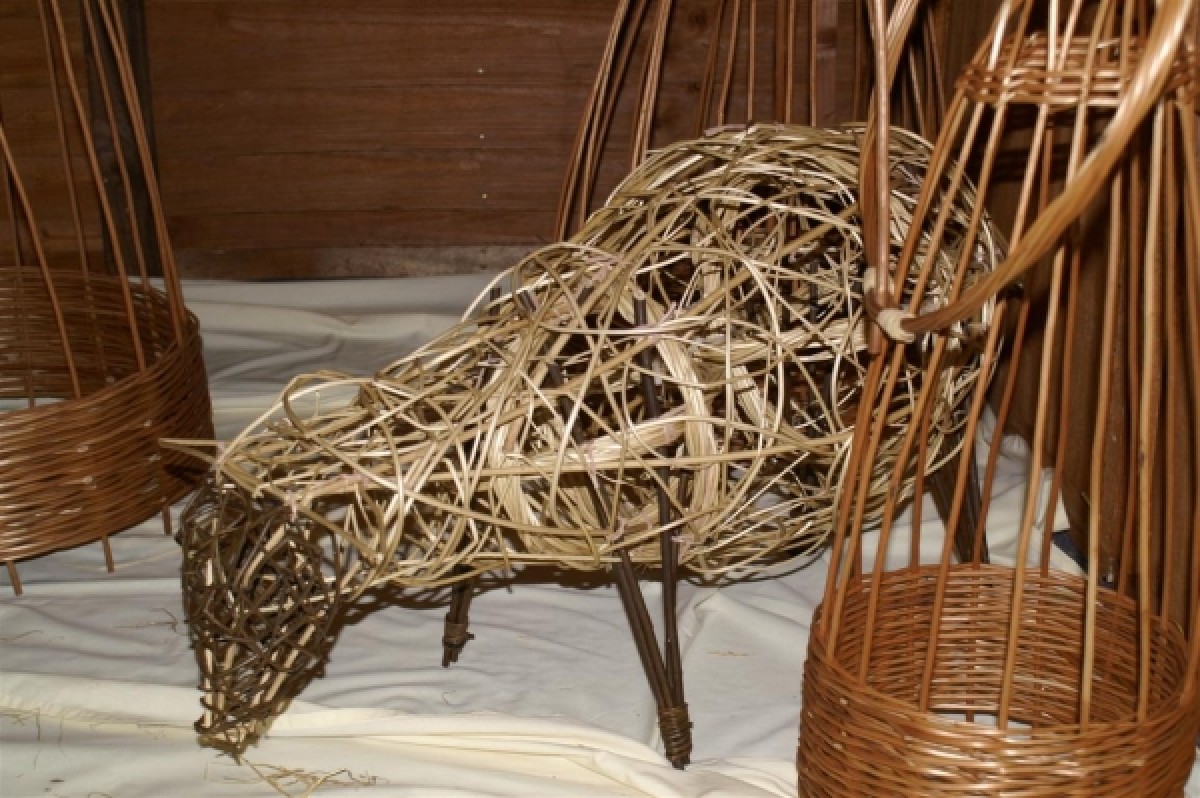Mary volunteered to provide the livestock input by making a sheep, having previously made one at a workshop. This was extremely time-consuming but the sheep proved to be an extremely popular feature of the completed display. Sourcing the white willow at short notice was not straightforward but the beautiful result justified the effort involved.