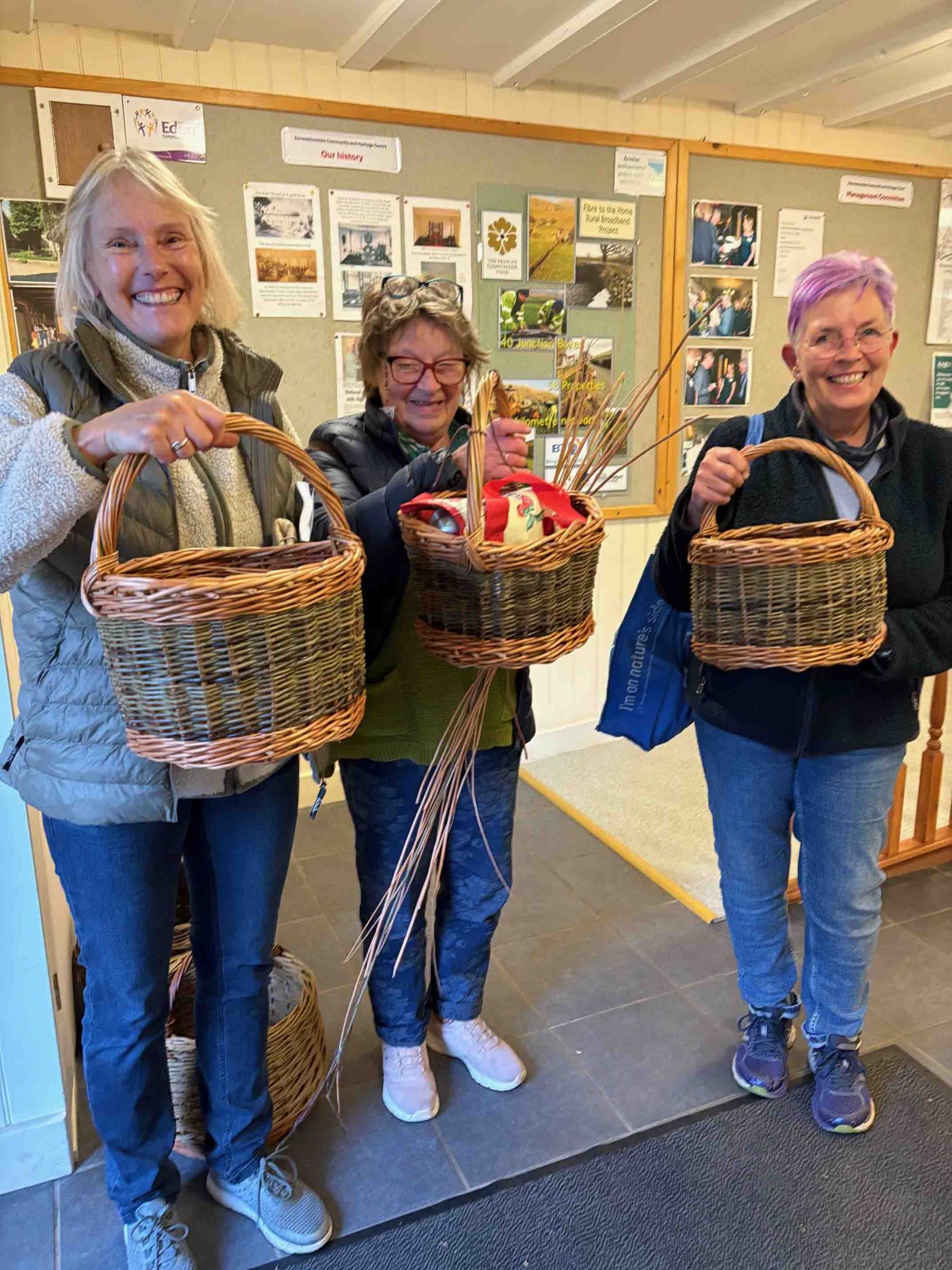 We had a wonderful weekend of weaving with this lovely group of beginning basketmakers at Ravenstonedale on the 11th and 12th of October. The beginners workshop was tutored by Karla Pearce and hosted by our Eden Valley Self Help Group, our only group in Cumbria. Thank you to Elaine Blackett-Ord for organising the workshop.