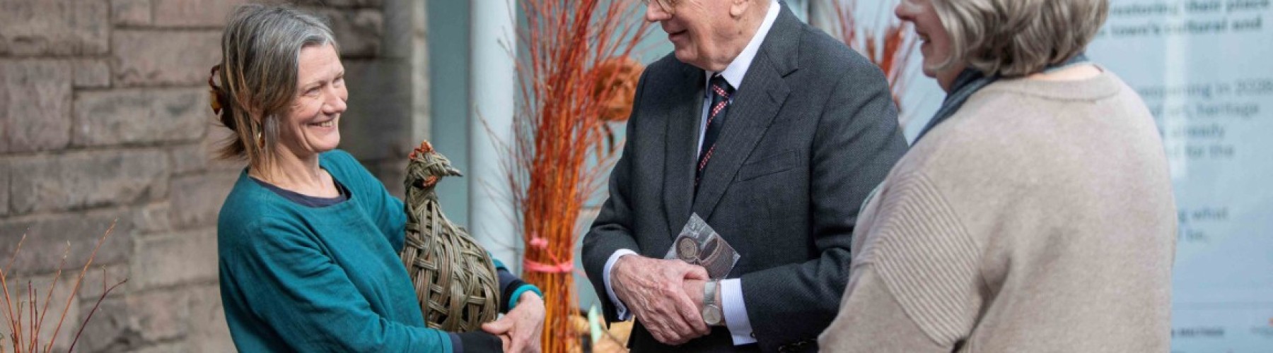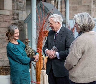Lou Washington has received some further images of the visit from Jess Thomas-Harrison at English Heritage. The photos show the Duke with Elaine and Charlotte admiring Anna's hare sculpture, and spending time chatting with Anna.