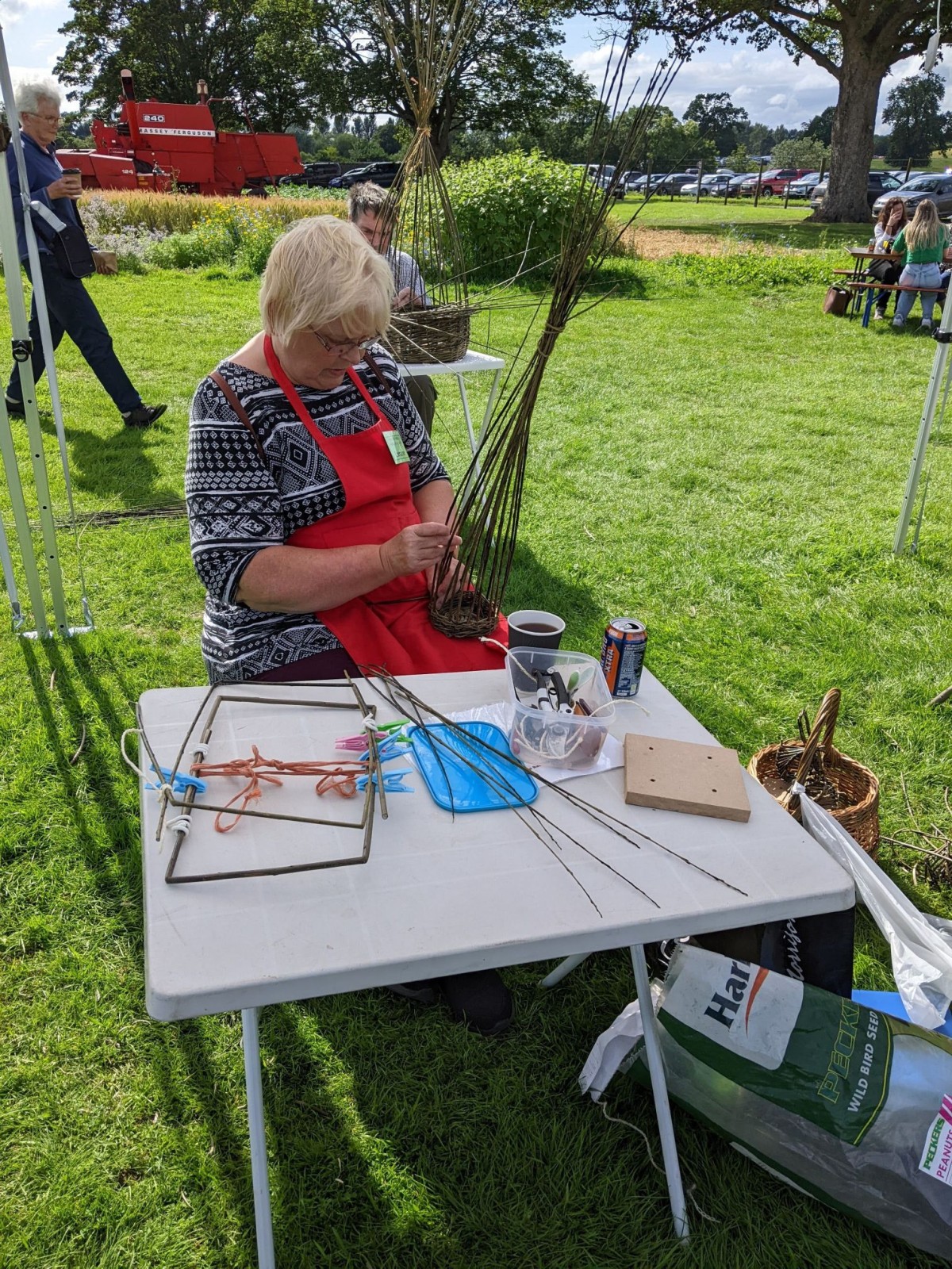 It was staffed by enthusiastic members, happy to chat with visitors about NBG and basketry in general. We also offered have-a-go opportunities, and many people, from very young to not so young, went away delighted with their bird feeder or fish. At the same time, weaving demonstrations were taking place from log baskets to screens via a Zarzo basket, brooms and snails.