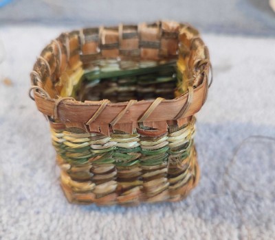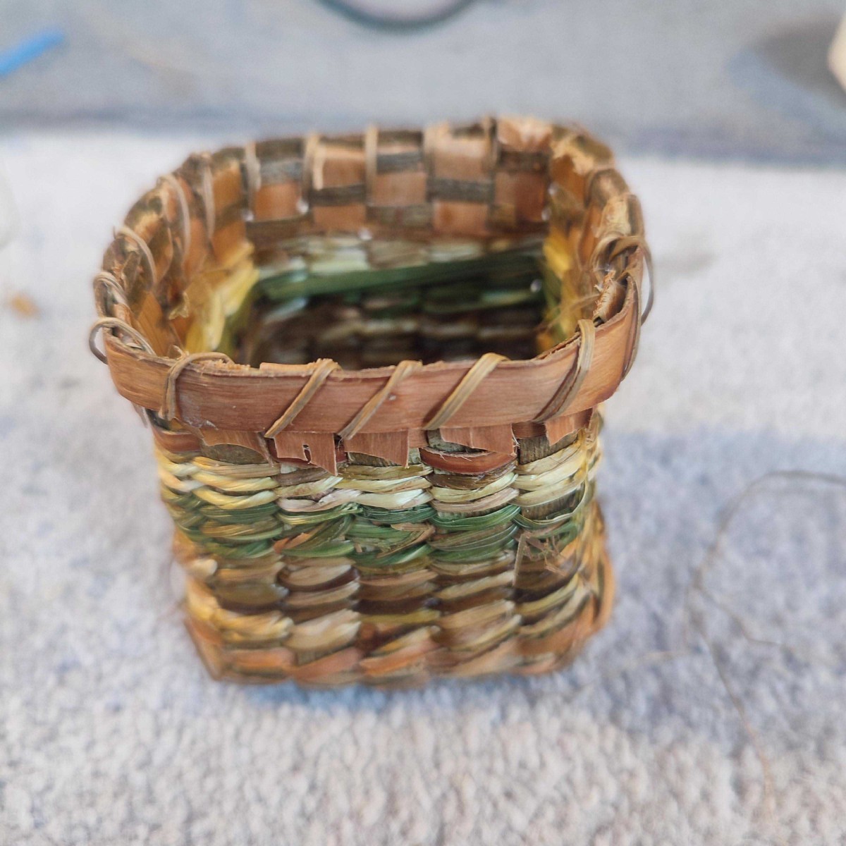 The group all enjoyed the different mediums and working small scale on the very tiddly baskets. We all learnt so much about how the fibres and bark behaved with soaking, base options, how to join fibres, how to fasten off and make borders on the different projects.