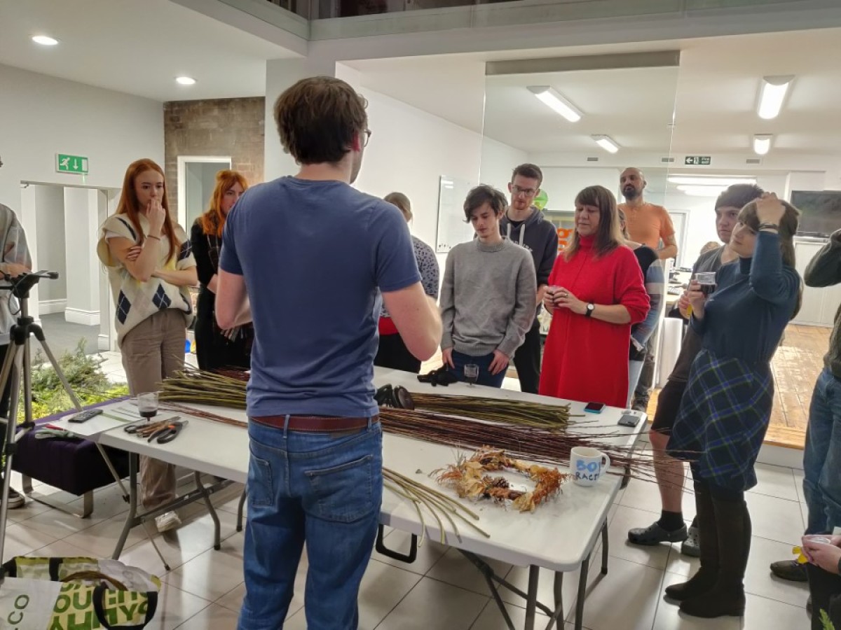 With mulled wines and mince pies, the staff spend the first half of the evening learning to work with the willow and make hoops. The second part of the evening is spent making the evergreen sprays to attach to the willow hoops and complete the wreaths. Graham has kindly sent images of the process.