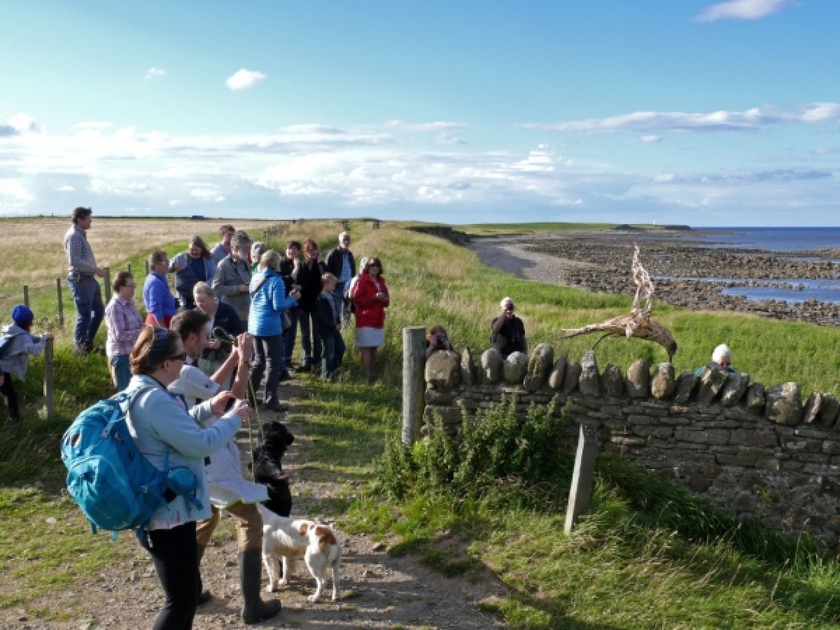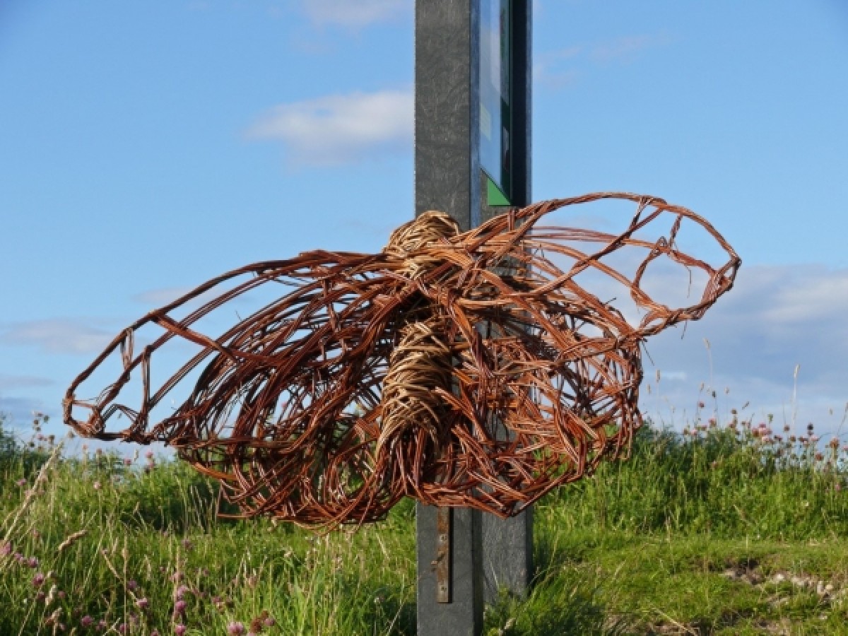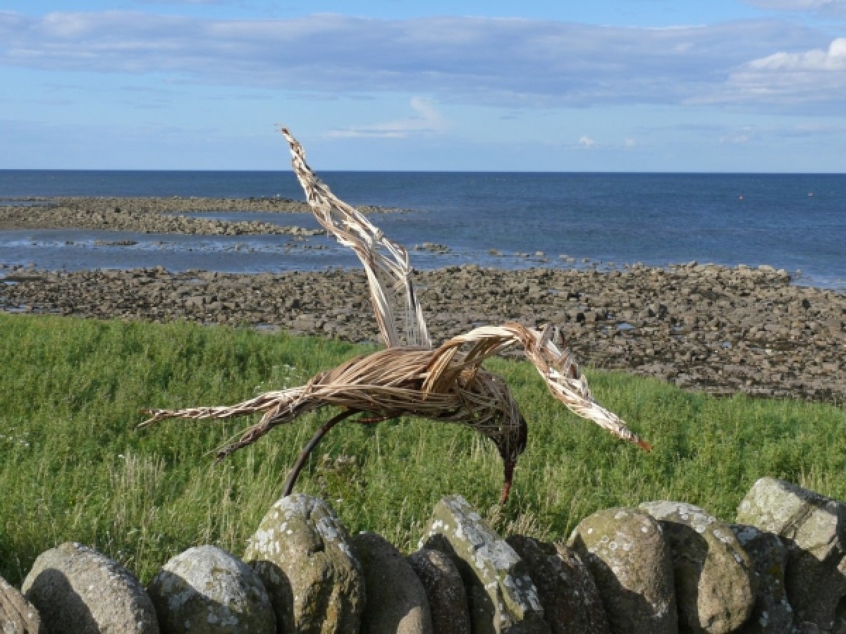 Yesterday evening a group of 20 people attended the inaugural walk to view the willow sculptures located at various points on the Island nature trail. The walk was led by Andrew Craggs, Reserve Manager Lindisfarne National Nature Reserve. (Natural England is a partner of Peregrini Lindisfarne Landscape Partnership) and sculptor Anna Turnbull. The willow sculptures depicting wildlife on the island were created by Peregrini volunteers tutored by Anna.