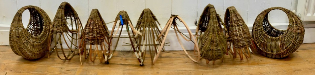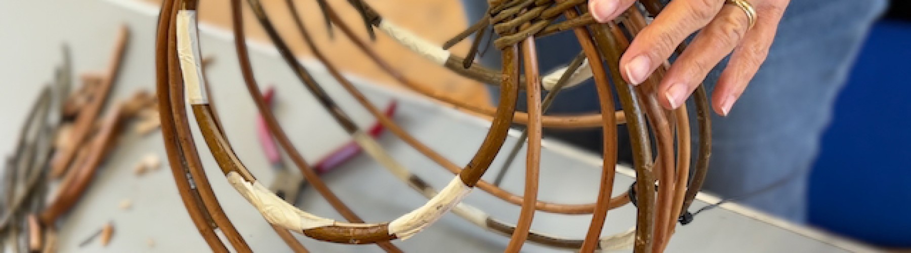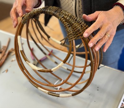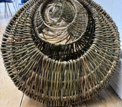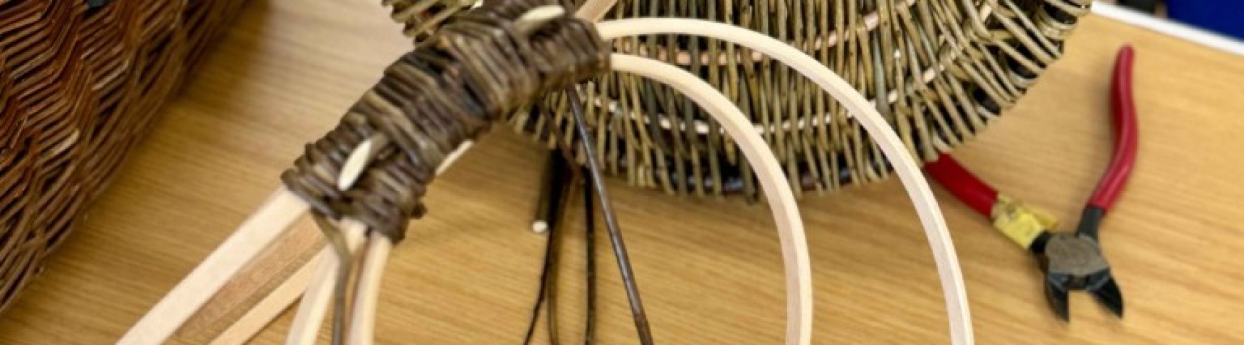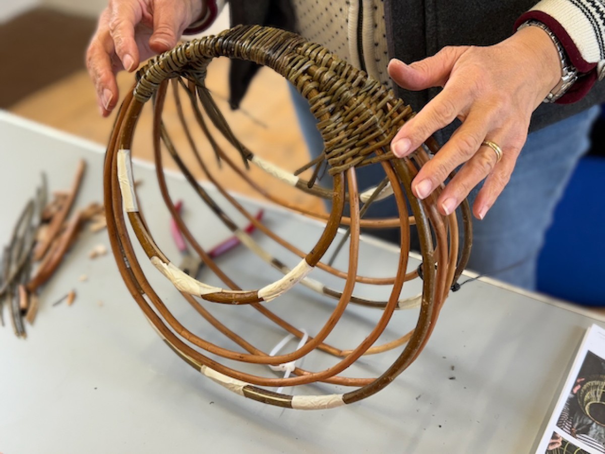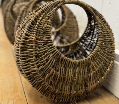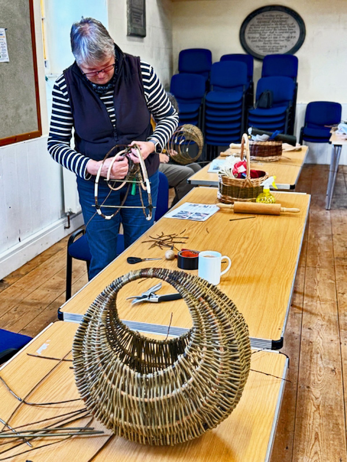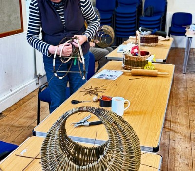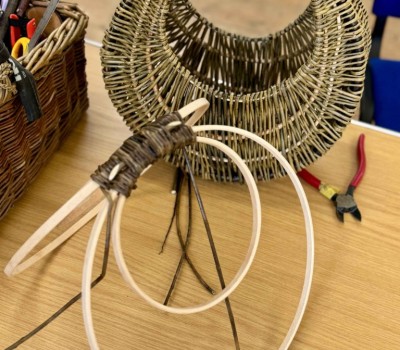 Eden Valley Basketry Group concentrated on making hen baskets at their October meeting. They used both willow hoops and an alternative material, in this case, embroidery frames. Eight members took part and they had prepared by reading the chapter on her foraging basket in Jenny Crisp’s book ‘Willow’. A sample basket was prepared by group leader, Elaine Blackett-Ord, and guidance given. Although quite challenging for some, it was very much appreciated that their baskets could be finished at home in their own time. The embroidery hoops proved challenging, particularly at the handle point, but great progress was made all round.