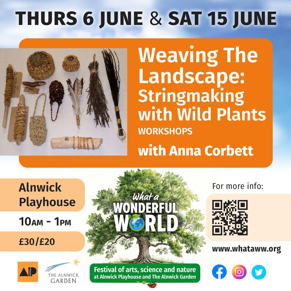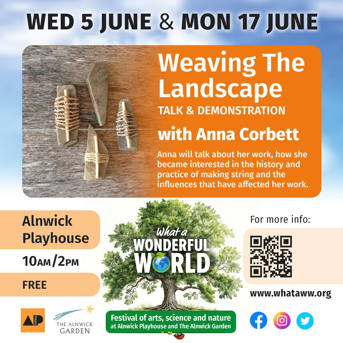 Anna Corbett is delighted to be supporting and taking part in this year's What a Wonderful World festival, a celebration and investigation into art, science and nature, taking place in Alnwick. Most of the festival events take place over the weekend of 27 - 30 June, but Anna will be delivering two talks (free) and two workshops (paid for) in the weeks leading up to the festival.