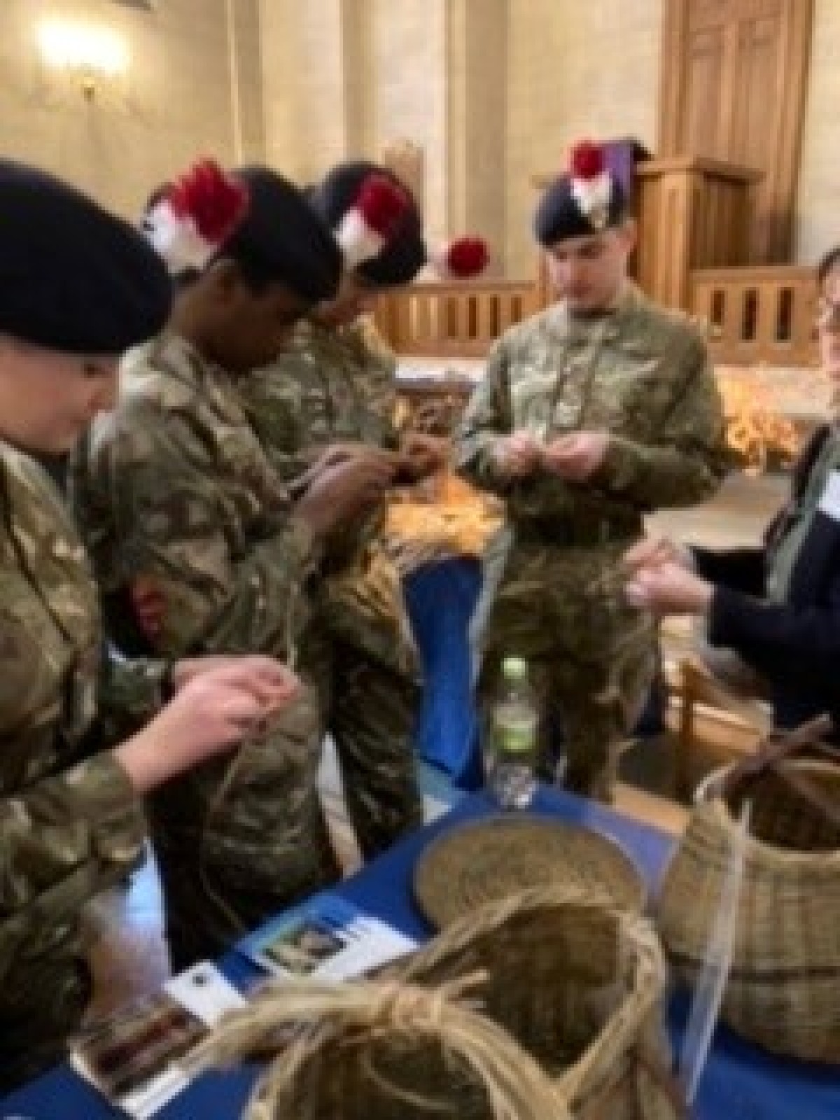 The Army Cadets formed a very impressive guard of honour and welcome to the Duchess of Gloucester, as well as manpower setting up and taking down at the end of the day. They were a great bunch of young people and embraced the opportunity to learn how to make string.
